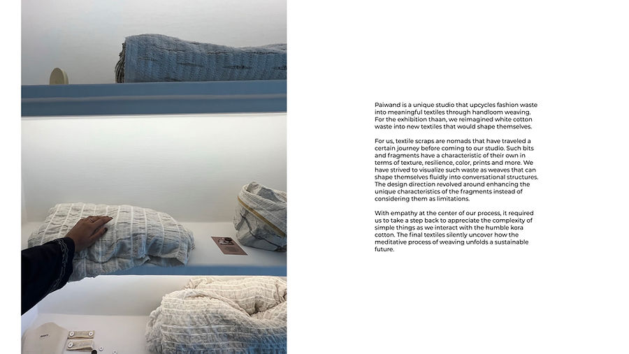 The exhibition featured upcycled textiles hand-woven by the weavers at Paiwand Studio after being meticulously crafted into a textural treat by the detail oriented garment construction techniques of Bodice Studio.